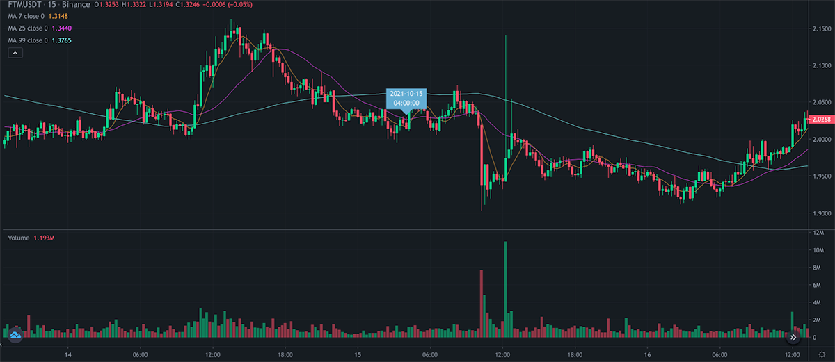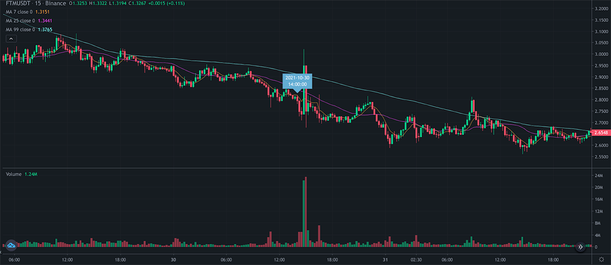 The following price charts are taken from Binance, where you can see the price impact after the inflows of FTM.